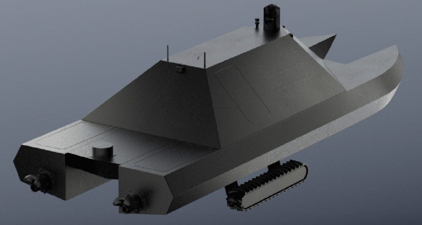 Technically, the vessel measures 10.5 meters in length with a 3-meter beam and a shallow 0.4-meter draft. It can carry up to 1,500 kilograms of payload over approximately 300 nautical miles, reaching speeds of up to 35 knots at sea and around 5 kilometers per hour on land. Twin waterjets provide marine propulsion, while a hydraulic drive enables terrestrial movement. A modular payload bay allows rapid reconfiguration for cargo, sensors, or autonomous vehicles.